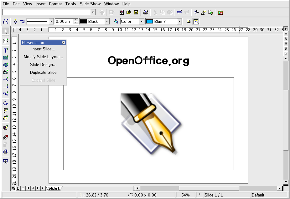 Figure 7-5 shows OpenOffice.org Impress in action.